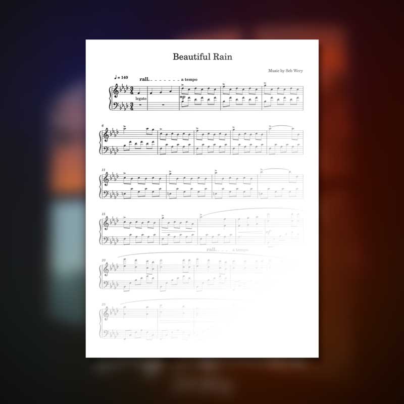 The original sheet music of ‘Beautiful Rain’ by Seb Wery in PDF format.